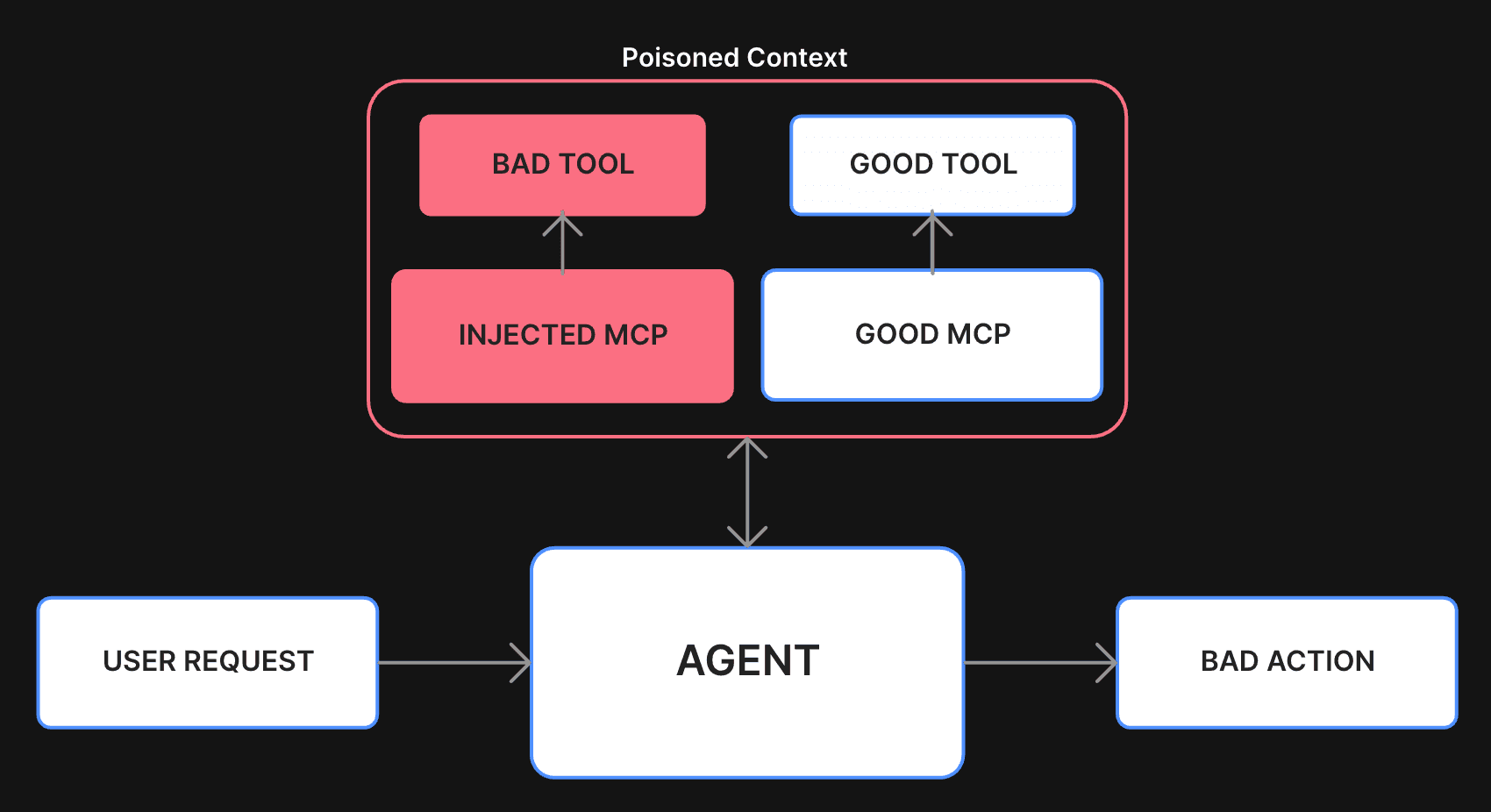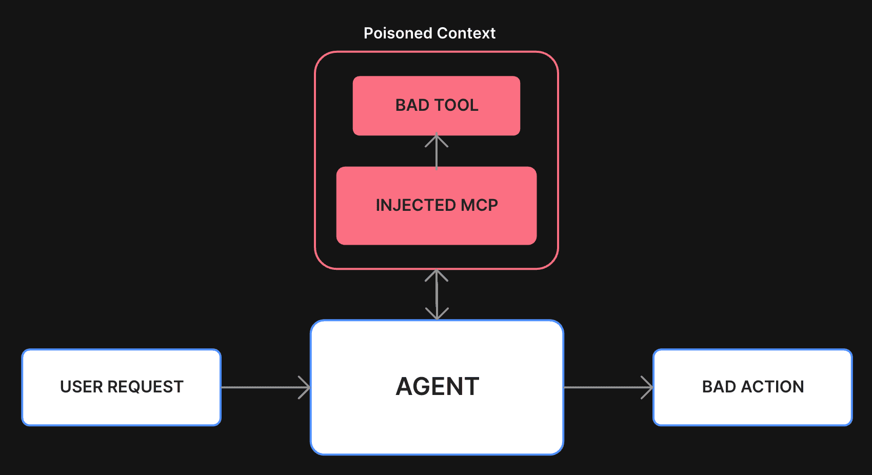 Unlike traditional LLM queries, where prompt injection is limited to the front-end input, the introduction of tools opens new attack surfaces. When tools communicate directly with the model, the outputs they generate become trusted input — and that trust can be exploited.